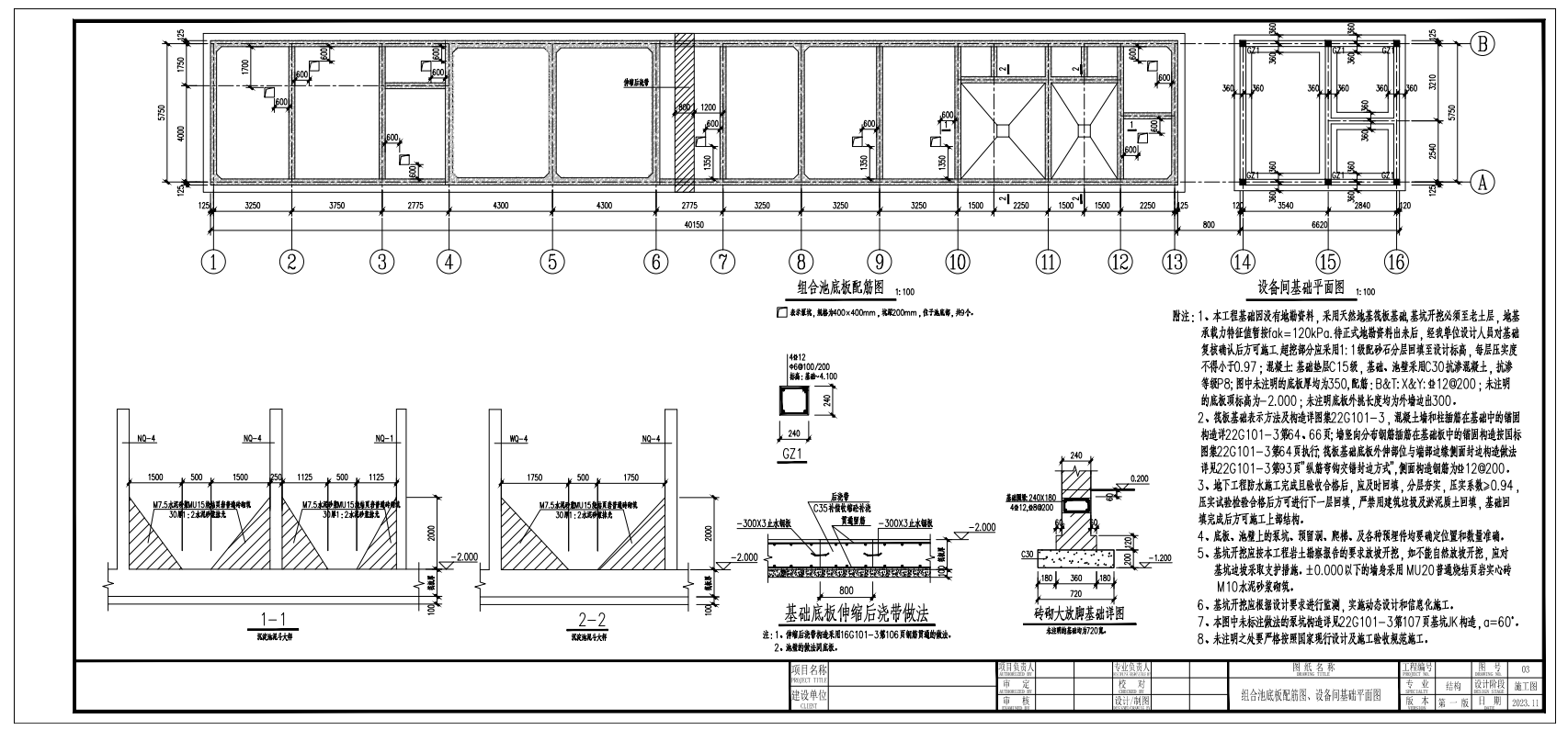 組合池底板配筋圖---設備間基礎平面圖